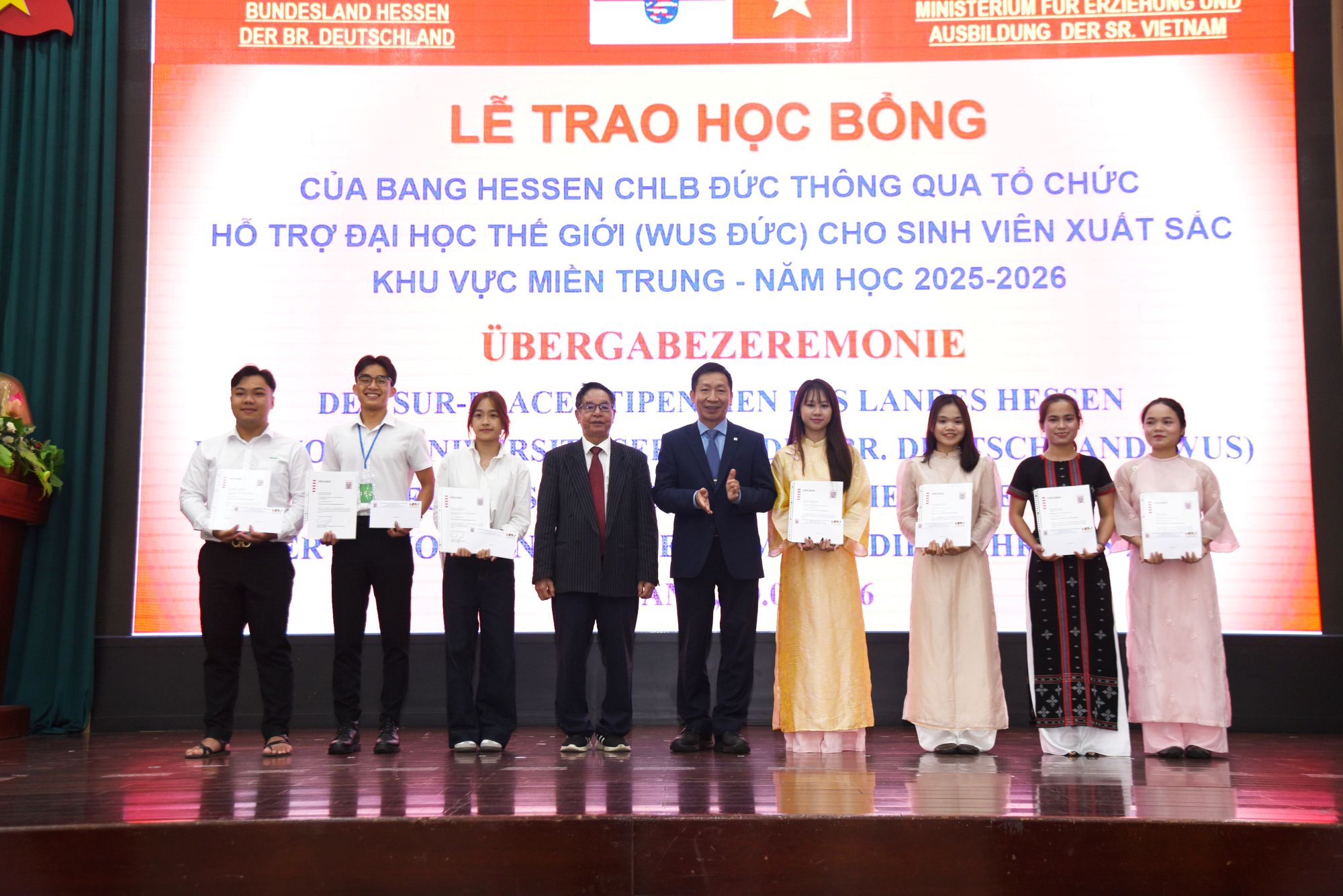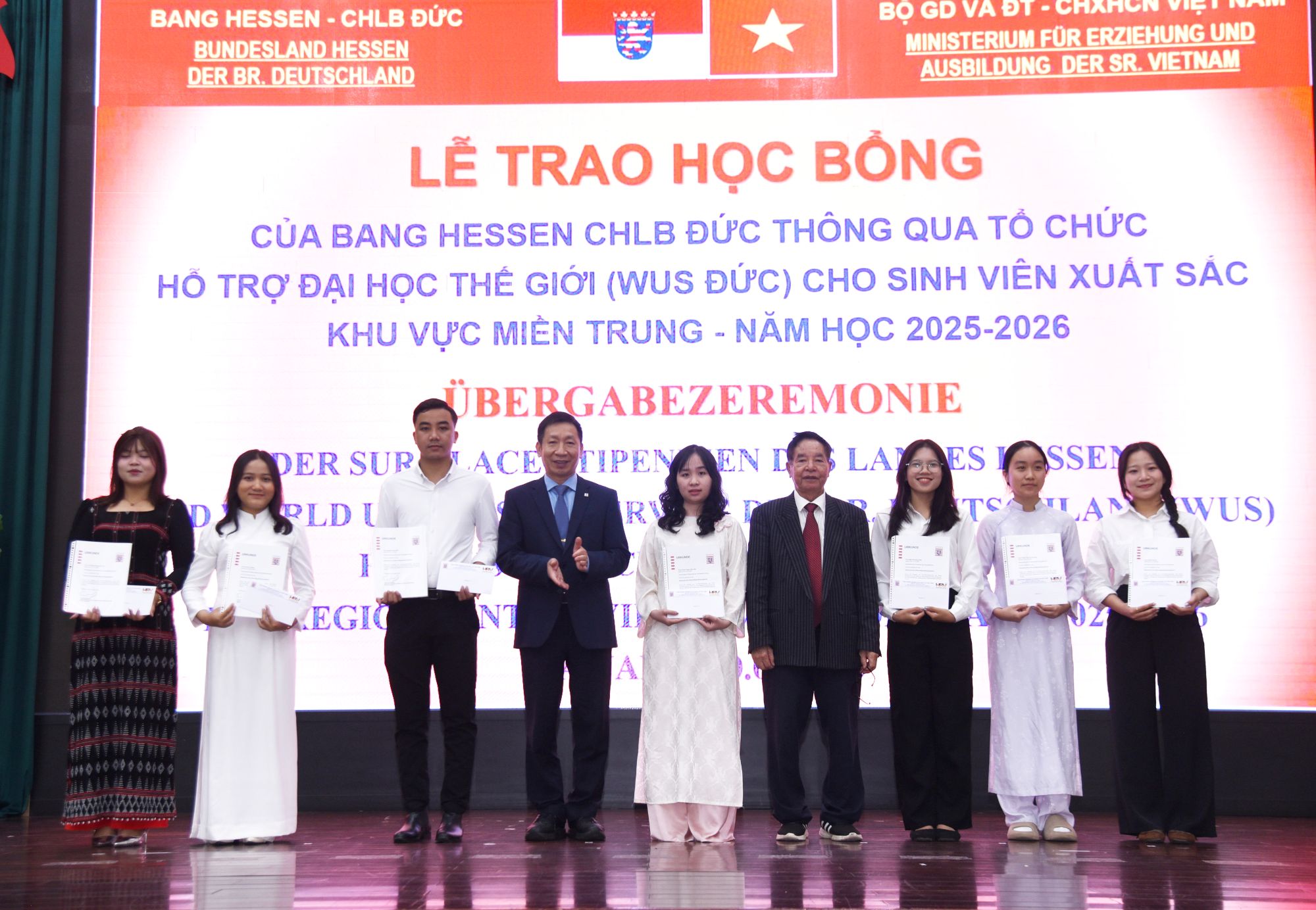 Ngày 20/3/2026, Đại học Đà Nẵng phối hợp với Văn phòng bang Hessen tại Việt Nam đã tổ chức Chương trình trao học bổng của bang Hessen, Cộng hoà Liên bang (CHLB) Đức cho sinh viên xuất sắc khu vực miền Trung năm học 2025-2026. Học bổng được triển khai tại Việt Nam suốt 35 năm qua, thiết thực hỗ trợ hàng ngàn sinh viên có hoàn cảnh khó khăn, đã bền chí vươn lên đạt thành tích cao trong học tập, góp phần phát triển nguồn nhân lực cho công cuộc xây dựng và phát triển Việt Nam. Nhất là giai đoạn tái thiết sau chiếnb tranh và hội nhập.