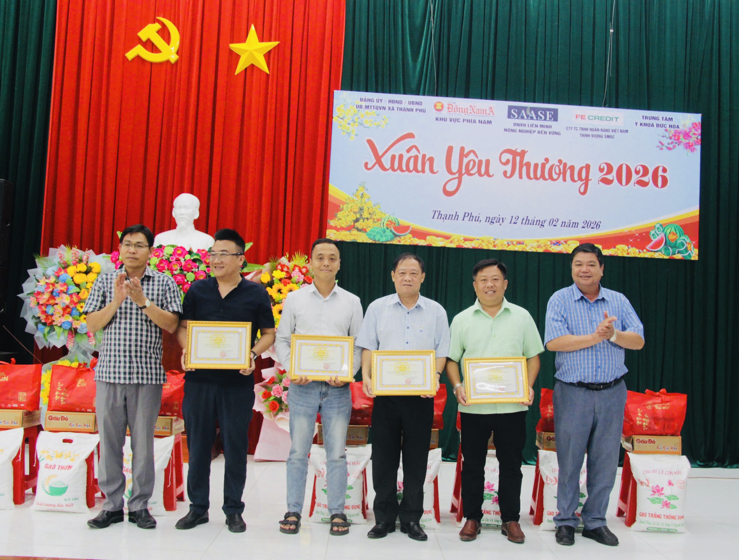 Ngày 12/2/2026, tại Nhà Văn hoá xã Thạnh Phú, thành phố Cần Thơ, Tạp chí Đông Nam Á phối hợp cùng các đơn vị tài trợ và chính quyền địa phương long trọng tổ chức chương trình “Xuân yêu thương 2026”, một hoạt động giàu ý nghĩa nhân văn, lan tỏa tinh thần tương thân tương ái trong cộng đồng. Chương trình đã trực tiếp trao tặng nhiều phần quà Tết thiết thực đến các hộ dân có hoàn cảnh khó khăn, kịp thời sẻ chia, tiếp thêm động lực để bà con đón Xuân mới ấm áp, đủ đầy và trọn vẹn niềm vui trong những ngày đầu năm.