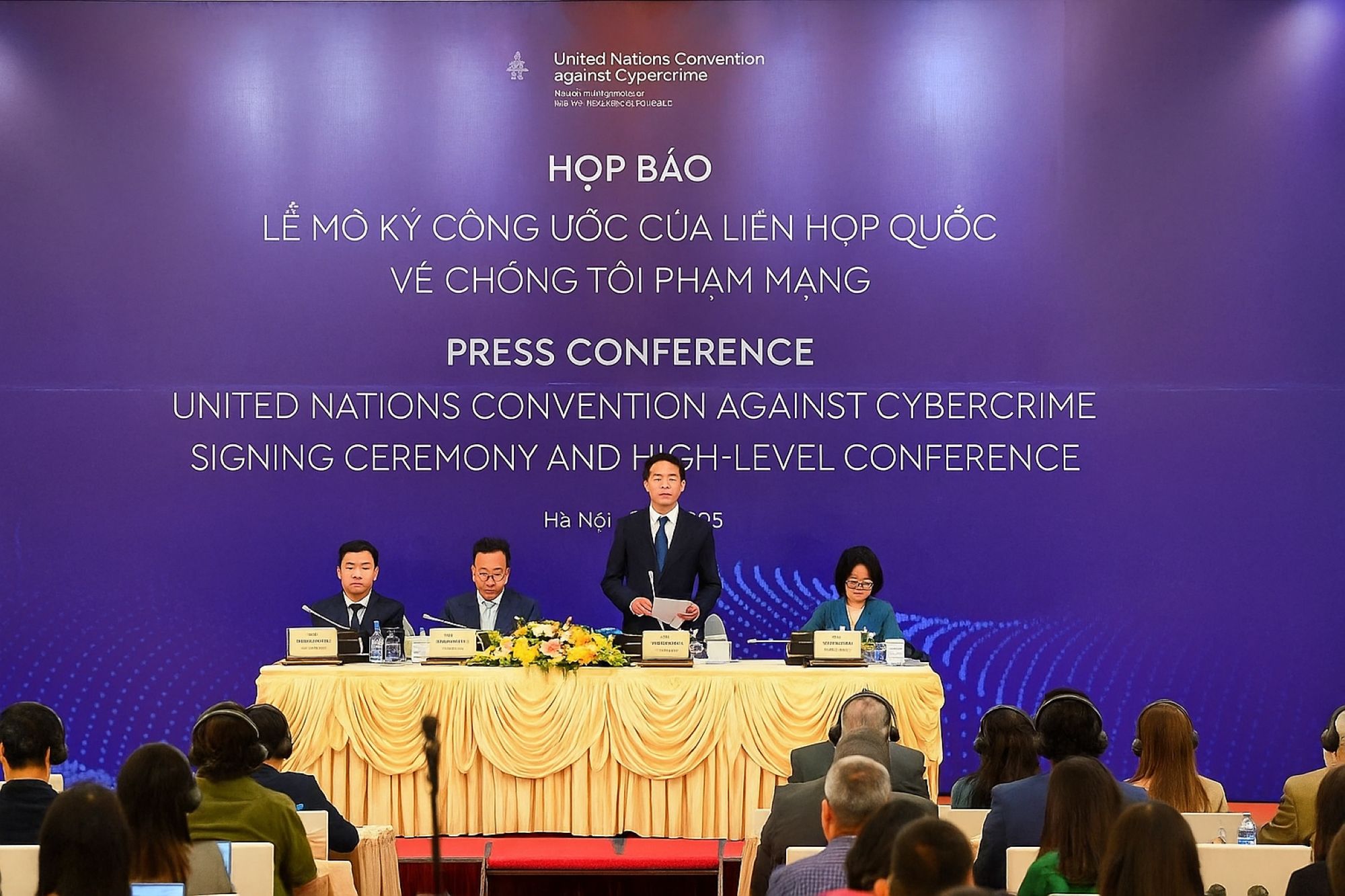 Tại họp báo, trả lời câu hỏi của phóng viên, Thứ trưởng Bộ Ngoại giao Đặng Hoàng Giang cho biết, Việt Nam là một trong những quốc gia kiên trì ủng hộ tiến trình đàm phán Công ước Liên hợp quốc về chống tội phạm mạng ngay từ năm 2019. Trong quá trình này, Việt Nam đã đóng góp nhiều nội dung quan trọng, đặc biệt là các nguyên tắc bảo đảm chủ quyền quốc gia trong không gian mạng, thúc đẩy hợp tác quốc tế, và điều phối, dẫn dắt thành công việc thương lượng một số điều khoản then chốt của Công ước.