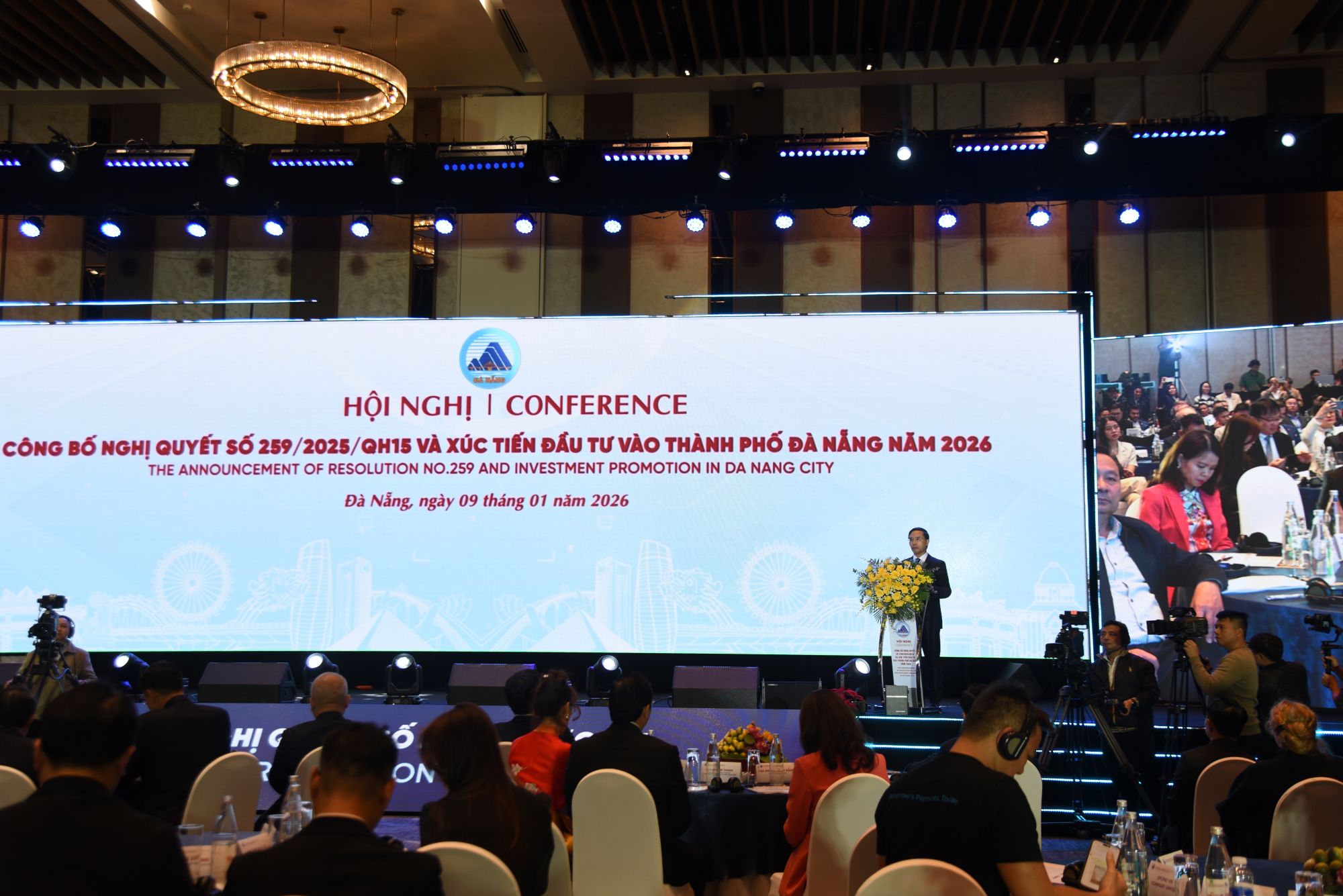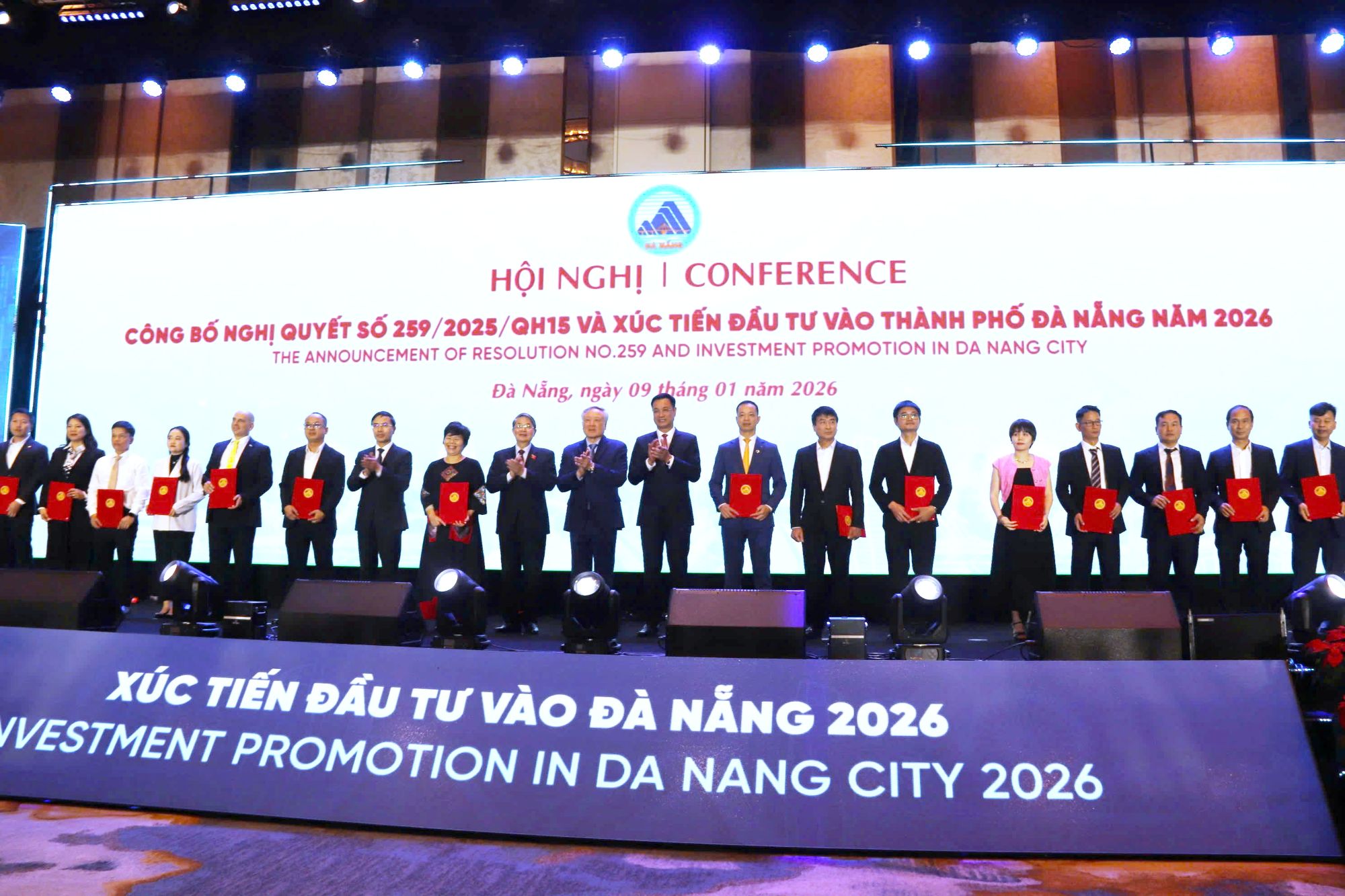(Đà Nẵng). Chiều ngày 9/01/2026, ngay sau khi diễn ra nghi thức khai trương Trung tâm Tài chính Quốc tế Việt Nam tại Đà Nẵng; UBND thành phố Đà Nẵng đã tổ chức Hội nghị công bố Nghị quyết số 259/2025/QH15 của Quốc hội và Xúc tiến đầu tư vào thành phố Đà Nẵng năm 2026.