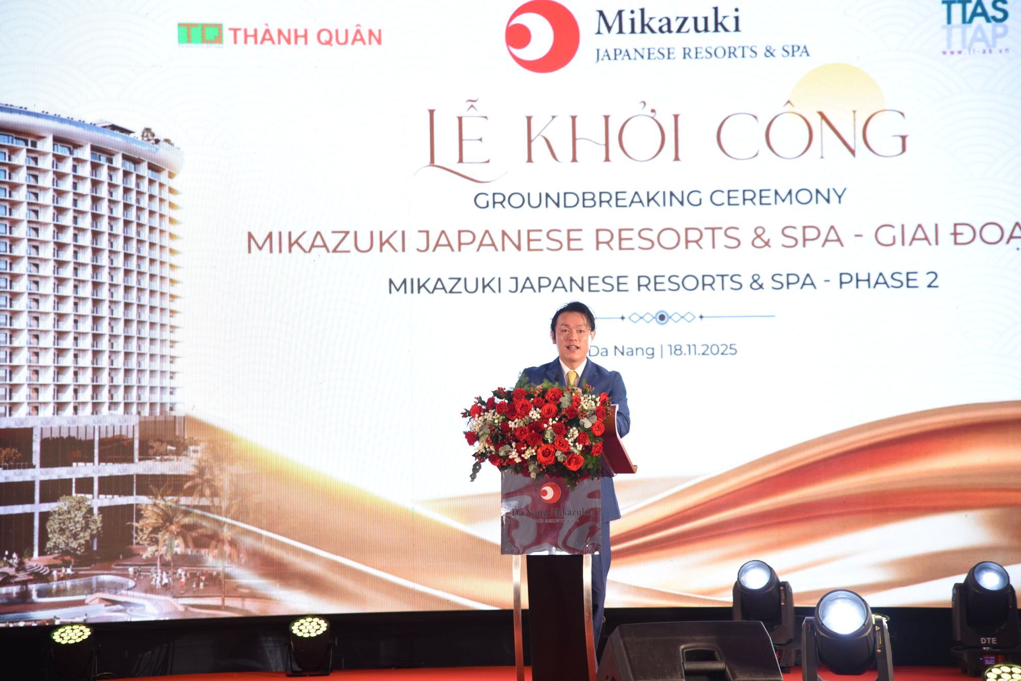 Trước đó, ngày 26/9/2025, trên trang Web của Công ty Cổ phần Thành Quân Đà Nẵng do ông Nguyễn Lam Giang làm giám đốc công bố chính thức ký kết hợp đồng tổng thầu thi công tổ hợp Khách sạn và Villas Mikazuki giai đoạn 2 tại bờ biển Nguyễn Tất Thành, Đà Nẵng.