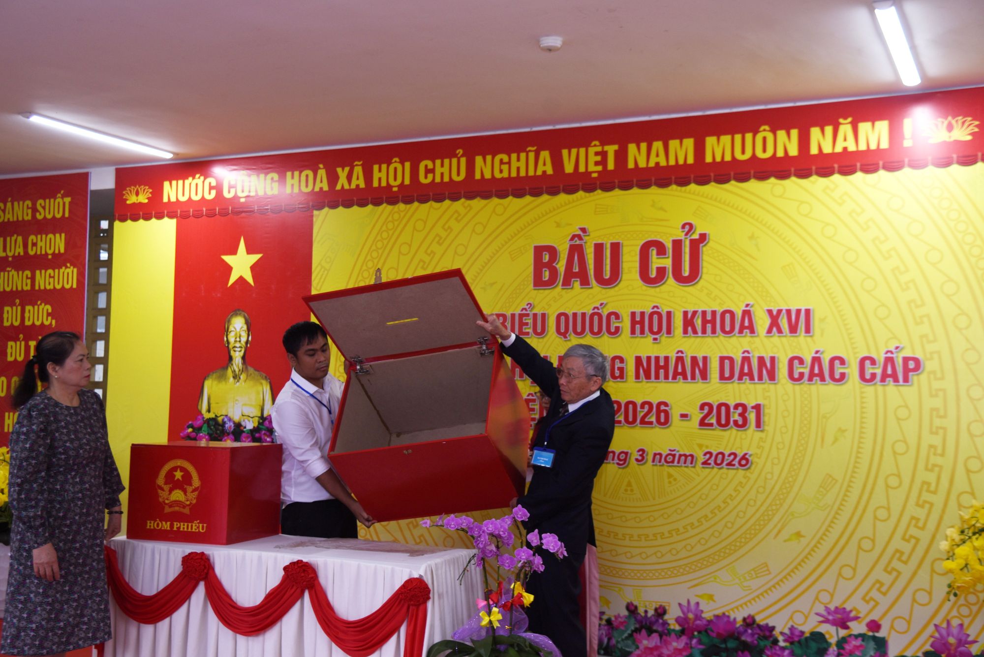 (Đà Nẵng). Đúng vào lúc 6:30 sáng nay (15/3/2026), đồng loạt các điểm bầu cử trên địa bàn thành phố Đà Nẵng, đã tiến hành phiên khai mạc. Sau các nghi thức, quy định bắt buộc như công bố thể lệ bầu cử, hướng dẫn trình tự bỏ phiếu, kiểm tra thùng (hòm phiếu); Tổ trưởng các điểm bầu cử đã công bố cuộc bầu cử đại biểu Quốc hội khóa XVI và đại biểu Hội đồng nhân dân các cấp trên địa bàn thành phố Đà Nẵng, nhiệm kỳ 2026-2031, chính thức bắt đầu.