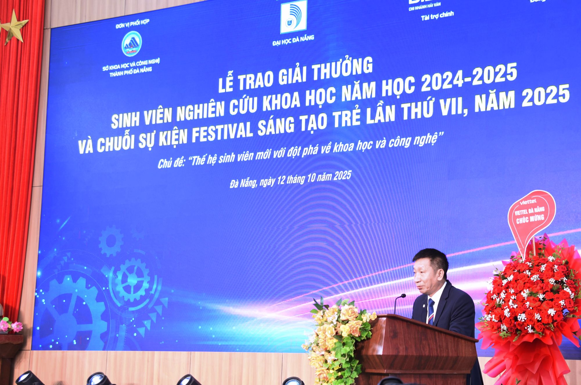 “Phong trào sinh viên nghiên cứu khoa học và đổi mới sáng tạo của Đại học Đà Nẵng đã ngày càng phát triển mạnh mẽ, kết trái ngọt như những giá trị cốt lõi của Đại học Đà Nẵng: “Chất lượng – Sáng tạo – Nhân văn – Phụng sự xã hội”. Từ Giải thưởng này, nhiều công trình nghiên cứu của sinh viên chúng tôi đã gặt hái thành công ở các cuộc thi, giải thưởng cấp quốc gia và quốc tế như: Giải Nhất Sinh viên NCKH toàn quốc 2024, Giải Sáng tạo VietFuture 2025, Quán quân IoT Challenge 2025, và nhiều giải thưởng khởi nghiệp, đổi mới sáng tạo khác. Đây là niềm tự hào, đồng thời là minh chứng cho năng lực, bản lĩnh và tinh thần sáng tạo của sinh viên Đại học Đà Nẵng”, PGS.TS Lê Thành Bắc, Phó Giám đốc Đại học Đà Nẵng nhấn mạnh.