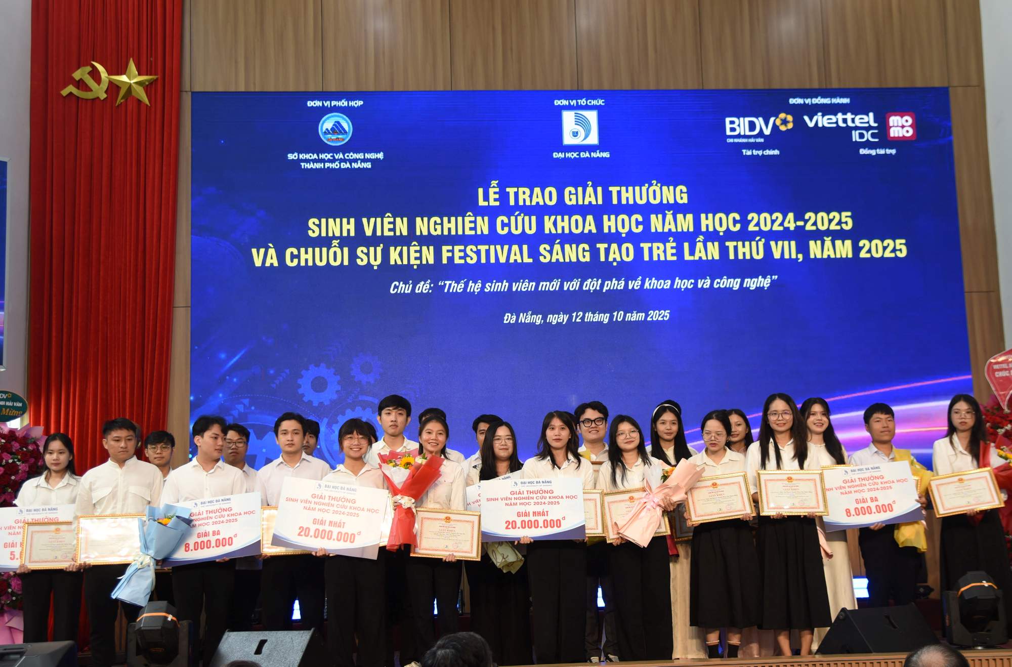 (Đà Nẵng). Sáng 12/10/2025, Đại học Đà Nẵng đã tổ chức “Lễ Trao Giải thưởng Sinh viên Nghiên cứu khoa học năm học 2024-2025 và Festival Sáng tạo trẻ năm 2025”, với chủ đề “Thế hệ sinh viên mới với đột phá về khoa học và công nghệ”.
