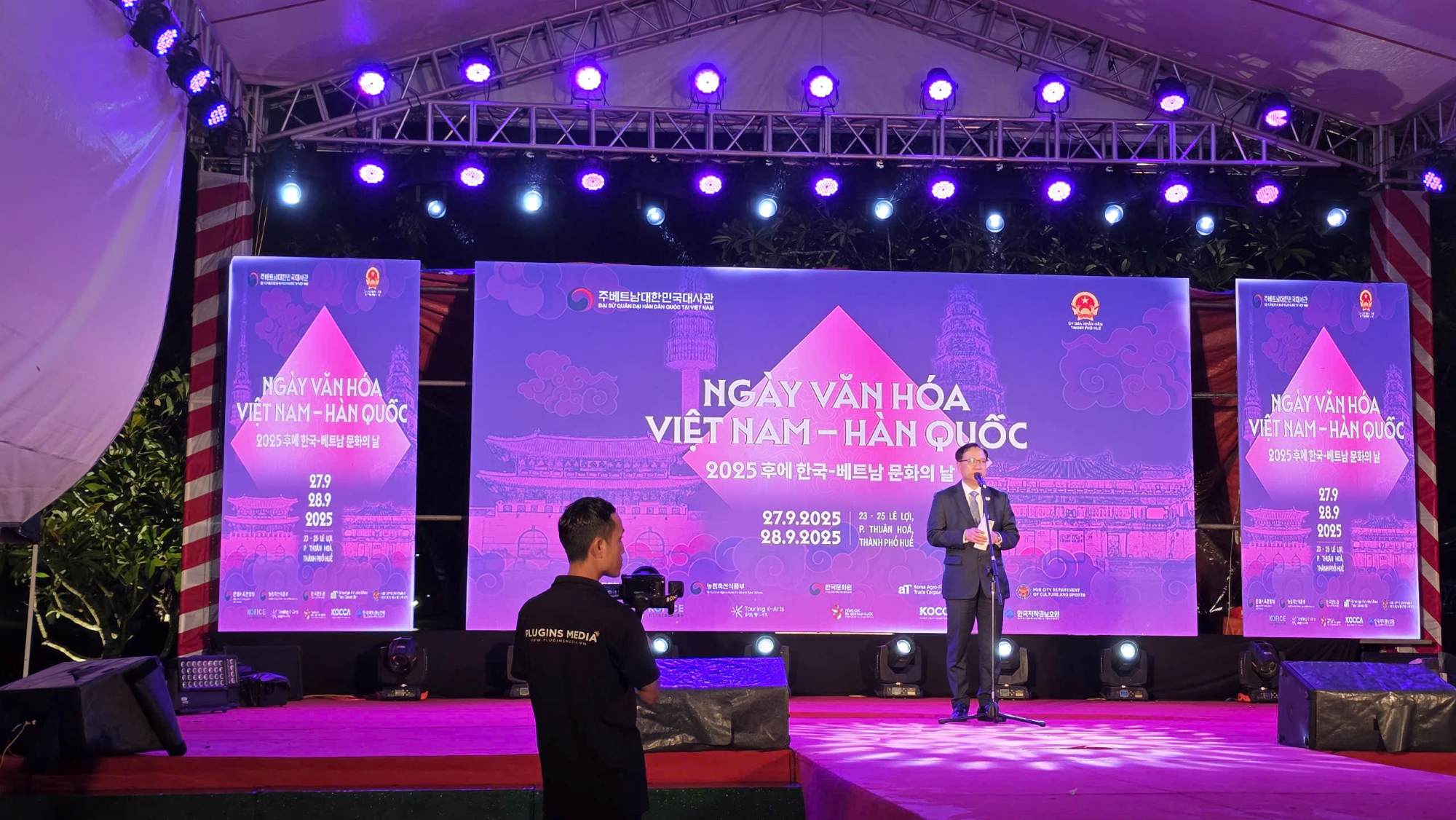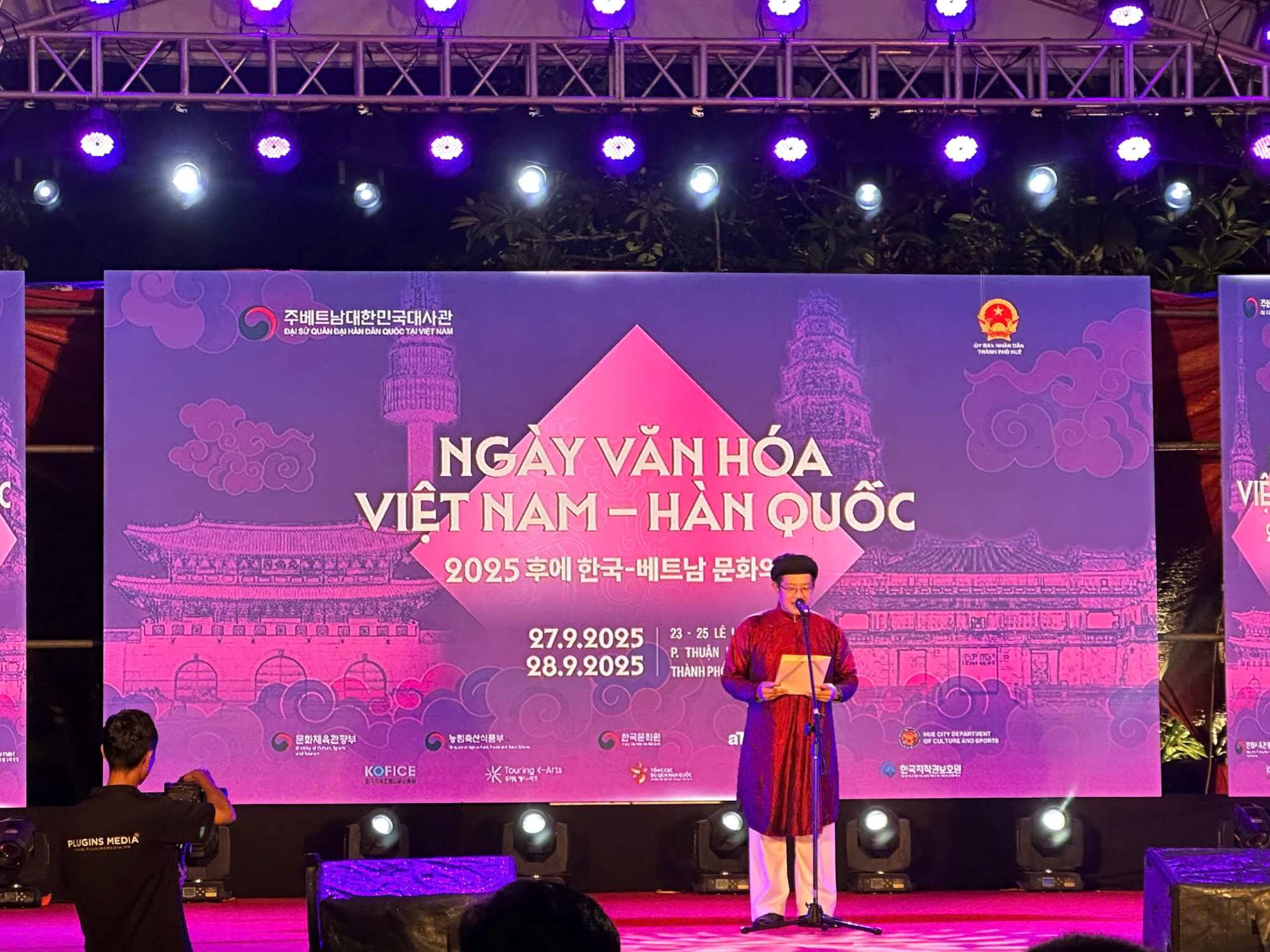 Đáng chú ý, sự kiện diễn ra đúng thời điểm Huế chịu ảnh hưởng trực tiếp của cơn bão số 10. Dù thời tiết không thuận lợi, Ban tổ chức vẫn nỗ lực hết mình để bảo đảm điều kiện tốt nhất cho các hoạt động. Toàn bộ khán đài và sân khấu đều được trang bị mái che, giúp khán giả và nghệ sĩ yên tâm thưởng thức trọn vẹn chương trình mà không bị mưa gió cản trở. Chính sự chủ động và chu đáo ấy đã mang lại một khởi đầu đầy ấn tượng cho chuỗi sự kiện văn hóa Việt – Hàn tại Cố đô. Giao hòa tinh hoa nghệ thuật Việt – Hàn