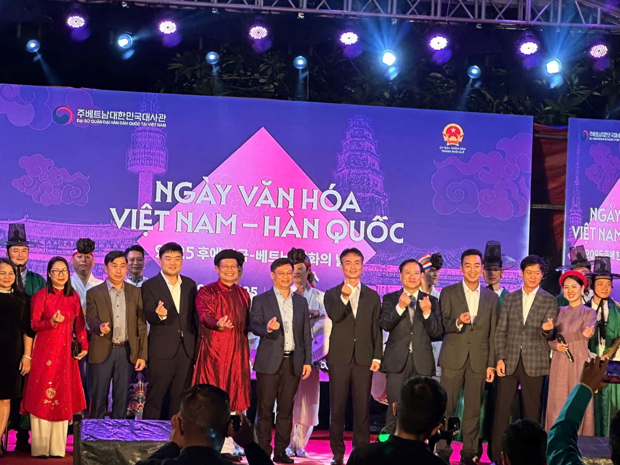 Điểm nhấn đặc biệt là phần trình diễn Nón bài thơ, Tà áo dài xứ Huế cùng bộ sưu tập áo dài của NTK Đoan Trang, song hành với trình diễn Hanbok truyền thống từ các nghệ sĩ Hàn Quốc. Sân khấu càng thêm bùng nổ khi ca sĩ Minh Hằng xuất hiện với loạt ca khúc trẻ trung, hiện đại, đồng thời giao lưu cùng khán giả về văn hóa – ẩm thực Hàn Quốc. Đoàn nghệ thuật Hàn Quốc cũng góp mặt với nhiều tiết mục đặc sắc như Gilnori & Jukwon, East & West, Sinawi, tạo nên bức tranh nghệ thuật giao hòa giữa truyền thống và hiện đại, Đông và Tây.