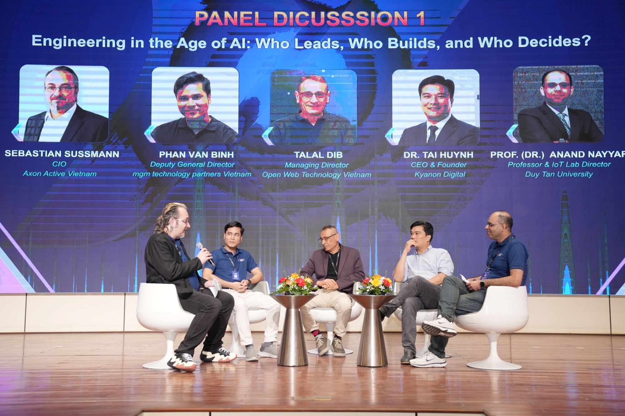 Trong bối cảnh AI đang tái định hình các đội ngũ phát triển phần mềm, từ các phòng nghiên cứu đến mô hình delivery offshore (chủ đầu tư/doanh nghiệp thuê dịch vụ bên ngoài, kể cả ngoài lãnh thổ, để triển khai các dự án hoặc quy trình; qua đó, tổng công ty, tập đoàn hoặc công ty mẹ có điều kiện tập trung vào các hoạt động kinh doanh chiến lược và mũi nhọn khác), phiên thảo luận chuyên đề I với chủ đề “Kỹ thuật phần mềm trong Kỷ nguyên AI: Ai dẫn dắt, Ai xây dựng, và Ai ra quyết định?” được cho là phiên thảo luận được mong đợi nhất. Phiên thảo luận tập trung khám phá vai trò lãnh đạo, kiến trúc hệ thống và năng lực ra quyết định của con người cần được chuyển hóa như thế nào trong các tổ chức vận hành theo hướng “AI-Native”.