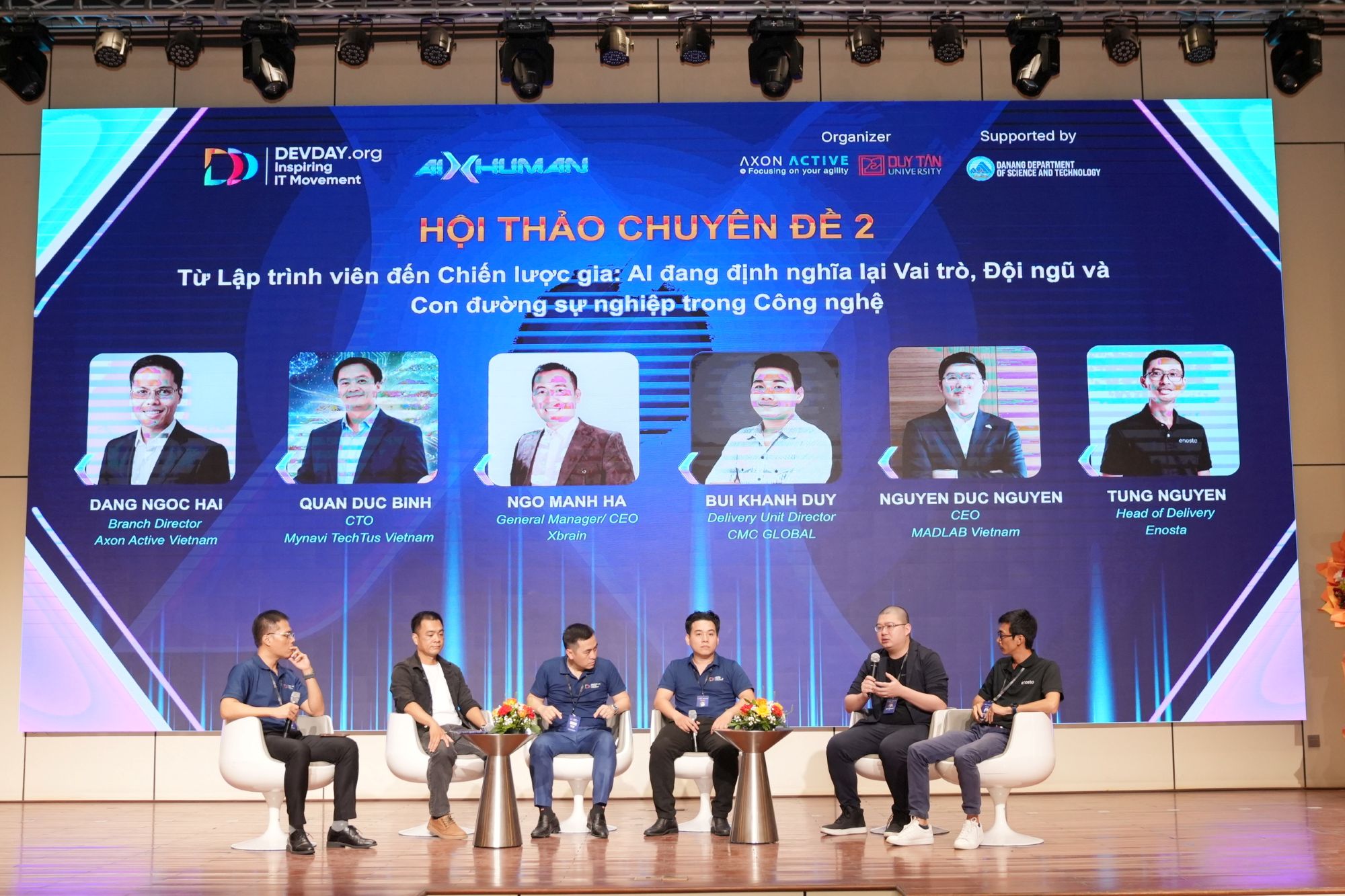Phiên II : “Từ Lập trình viên đến Chiến lược gia: AI đang định nghĩa lại Vai trò, Đội ngũ và Con đường sự nghiệp trong Công nghệ”. Ông Đặng Ngọc Hải (Giám đốc Chi nhánh Axon Active Việt Nam tại Đà Nẵng) giữ vai trò Điều phối (bìa trái ảnh).