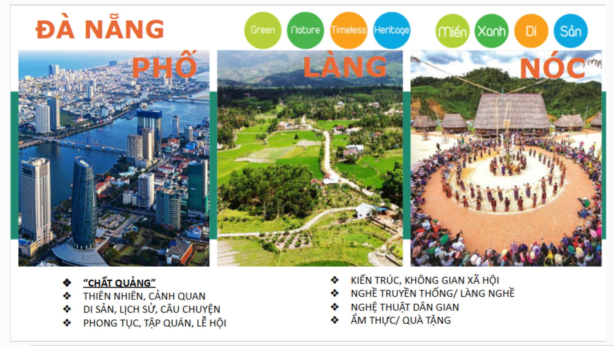 Đề xuất của diễn giả Lê Quốc Việt, CLB Điểm đến Xứ Quảng, mô hình Du lịch Đà Nẵng mới với “Phố – làng – Nóc”. Ảnh trích từ slide của diễn giả.