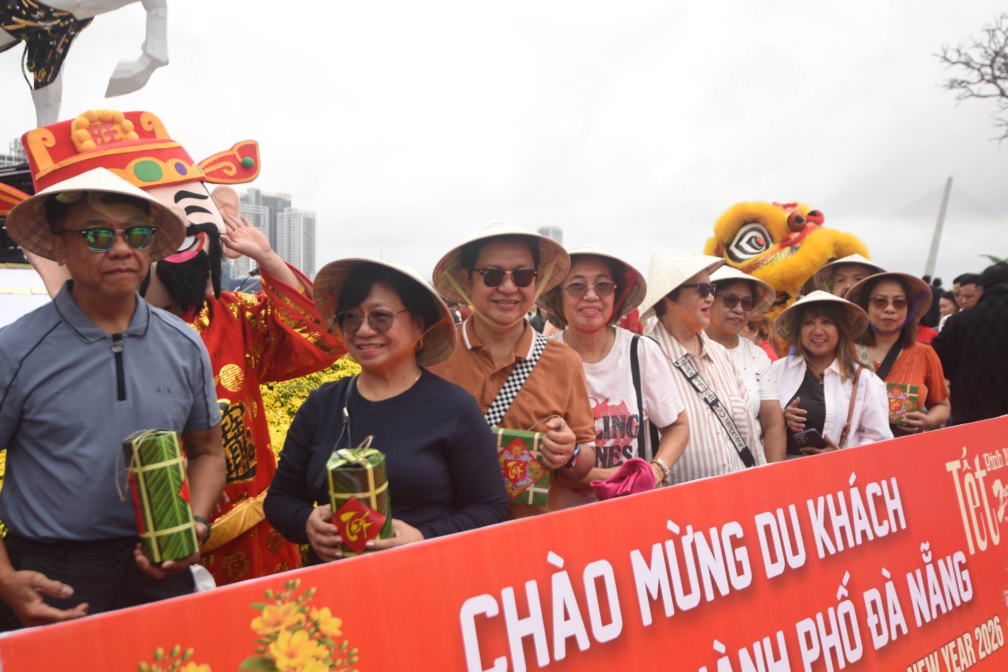 (Đà Nẵng). Lan tỏa thông điệp “Chạm về Nguyên bản”, tôn vinh nét đẹp Tết cổ truyền Việt Nam và khẳng định vị thế Đà Nẵng – điểm đến an toàn, thân thiện, sáng nay (17/2/2026, mùng 1 Tết Bính Ngọ), trong không khí rộn ràng ngày đầu năm mới, thành phố Đà Nẵng đã tưng bừng đón những vị khách du lịch đầu tiên đến “xông đất”.