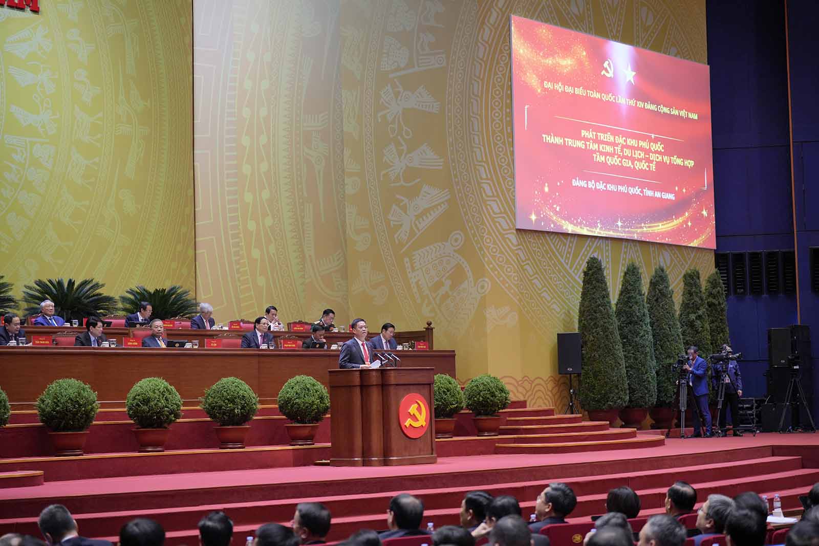 Trình bày tham luận tại Đại hội đại biểu toàn quốc lần thứ XIV của Đảng, Tỉnh ủy viên, Bí thư Đảng ủy đặc khu Phú Quốc Lê Quốc Anh cho biết phát triển kinh tế tiếp tục được xác định là nhiệm vụ trung tâm. Trên cơ sở đó, Nghị quyết số 13-NQ/TW ngày 2/4/2022 của Bộ Chính trị đã định hướng xây dựng Phú Quốc trở thành trung tâm dịch vụ, du lịch sinh thái chất lượng cao, du lịch biển, đảo tầm cỡ quốc gia và quốc tế, có khả năng kết nối với các trung tâm kinh tế lớn trong khu vực và trên thế giới.