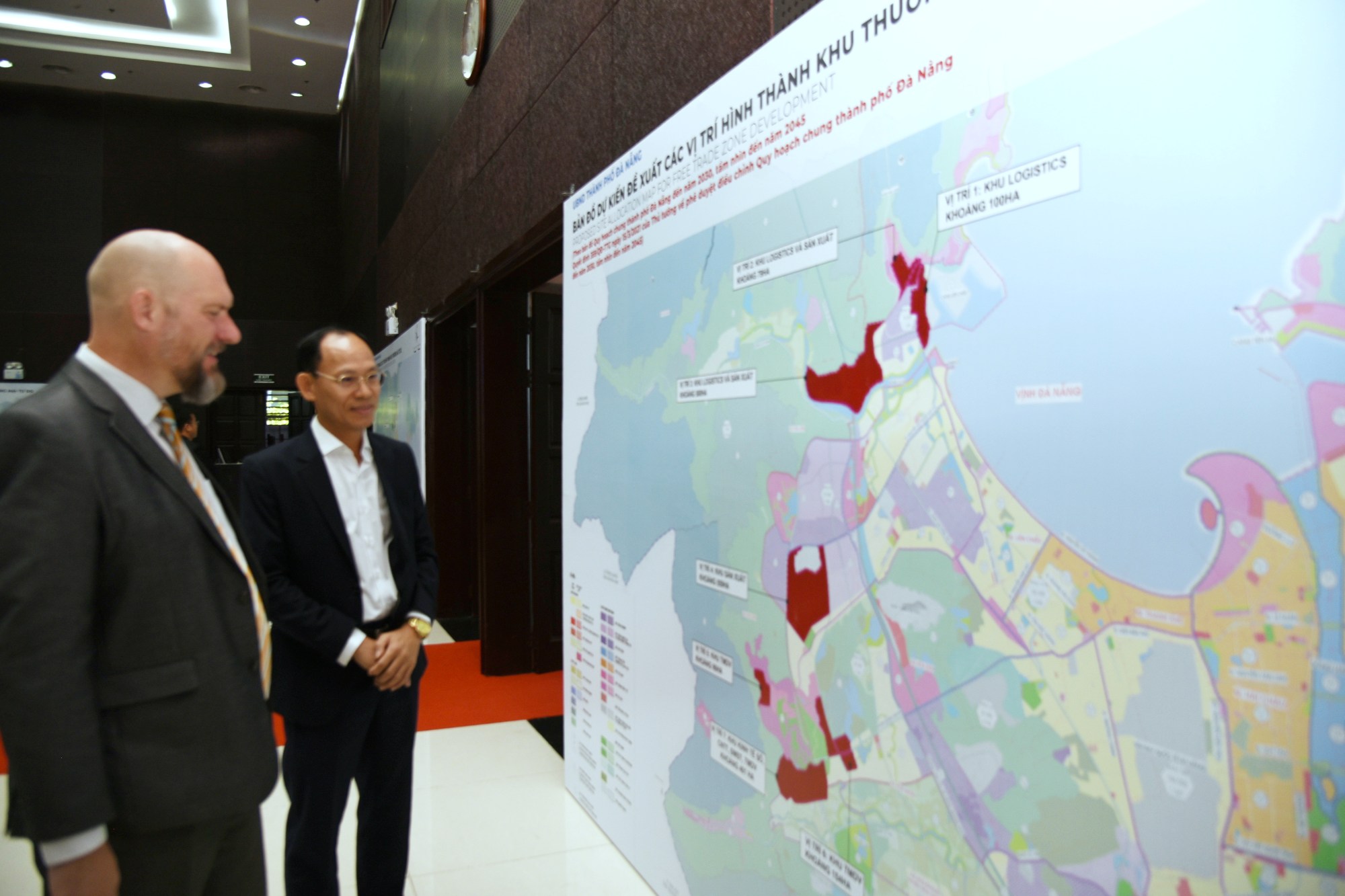 Nhà đầu tư quốc tế, trong nước tìm hiểu các vị trí “làm ăn” tại Khu Thương mại tự do Đà Nẵng. Ảnh: T.Ngọc.