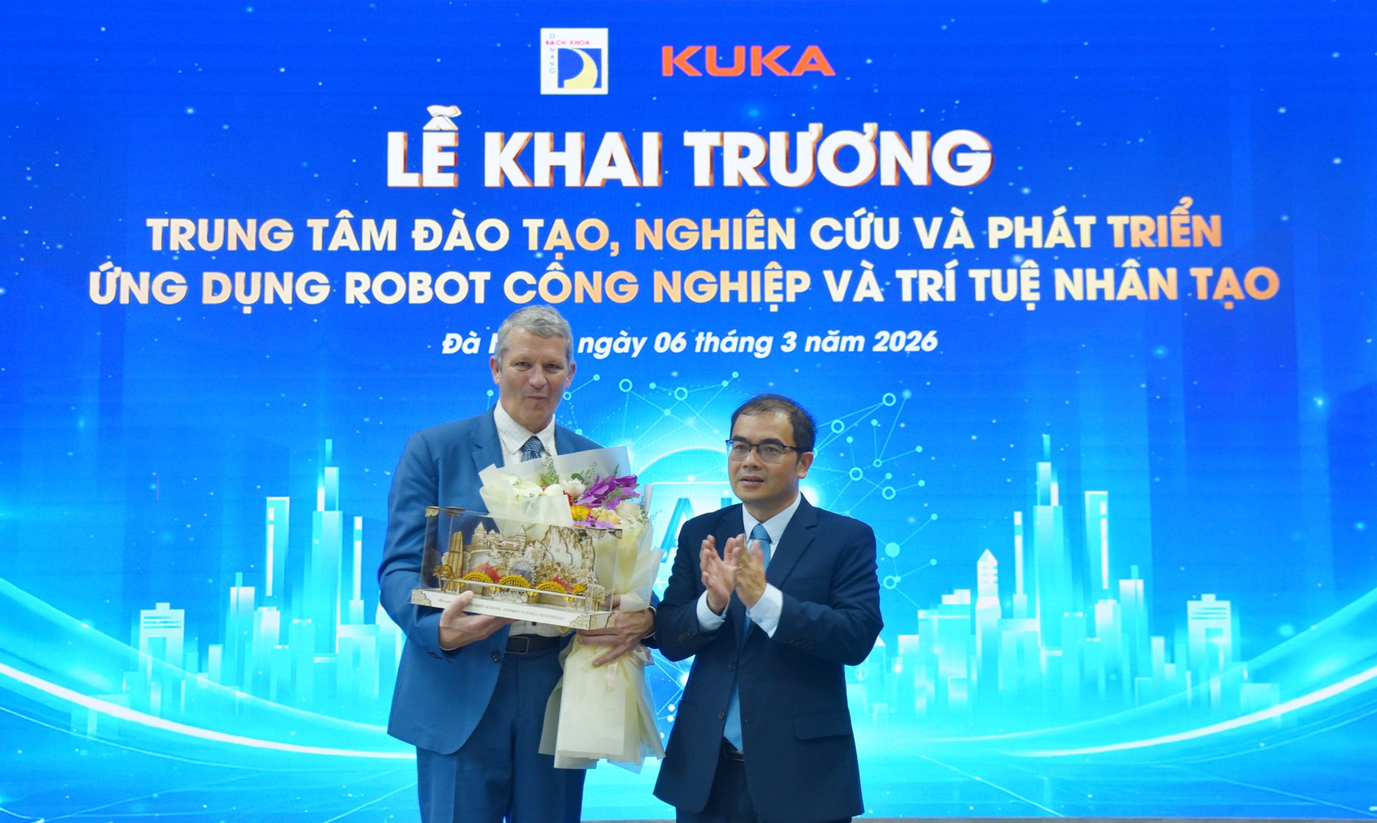 (Đà Nẵng). Chiều nay (6/3/2026), Trường Đại học Bách khoa, Đại học Đà Nẵng phối hợp cùng với Công ty TNHH KUKA Việt Nam, đã tổ chức Lễ khai trương Trung tâm Đào tạo, Nghiên cứu và Phát triển Ứng dụng Robot Công nghiệp và Trí tuệ nhân tạo. Đây cũng là Trung tâm đầu tiên của KUKA tại Miền Trung – Tây Nguyên.