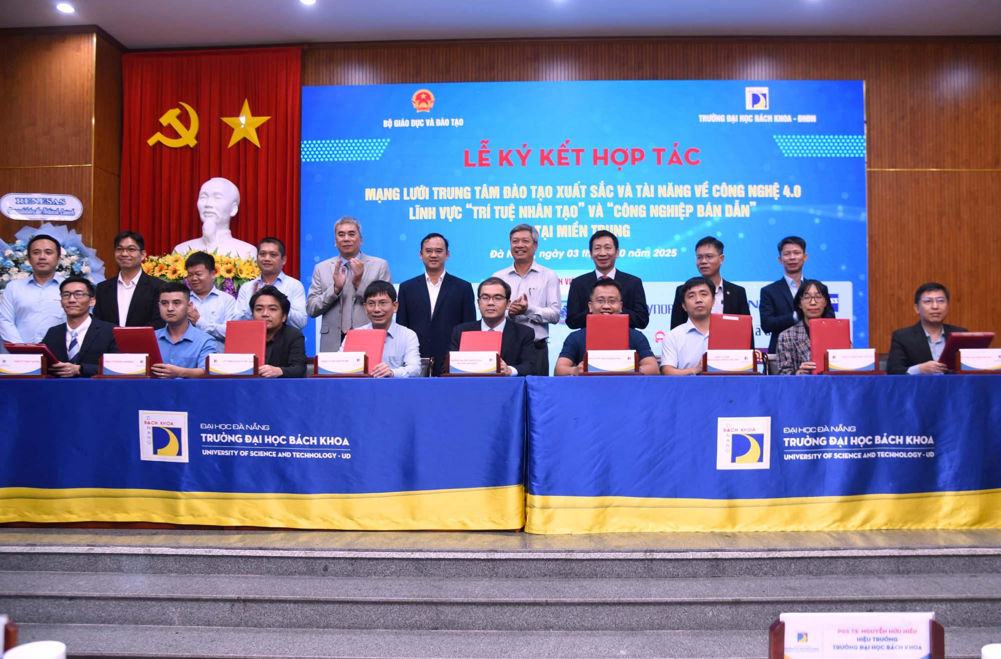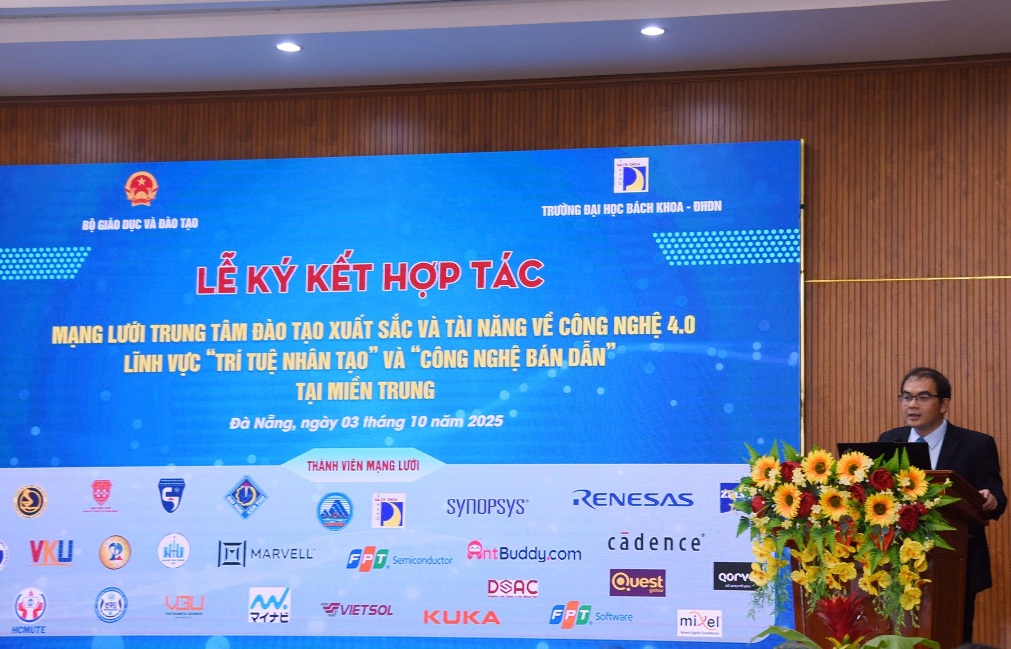 Chiều ngày 3/10/2025, tại Trường Đại học Bách khoa (Đại học Đà Nẵng) đã diễn ra lễ ra mắt và triển khai ký kết hợp tác Mạng lưới trung tâm đào tạo xuất sắc và tài năng về Công nghệ 4.0 lĩnh vực AI và Công nghiệp bán dẫn tại Miền Trung, với sự tham gia 10 Trường trong mạng lưới, Sở Khoa học – Công nghệ thành phố Đà Nẵng, cùng 8 doanh nghiệp công nghiệp công nghệ thông tin – công nghệ số, AI và vi mạch bán dẫn.