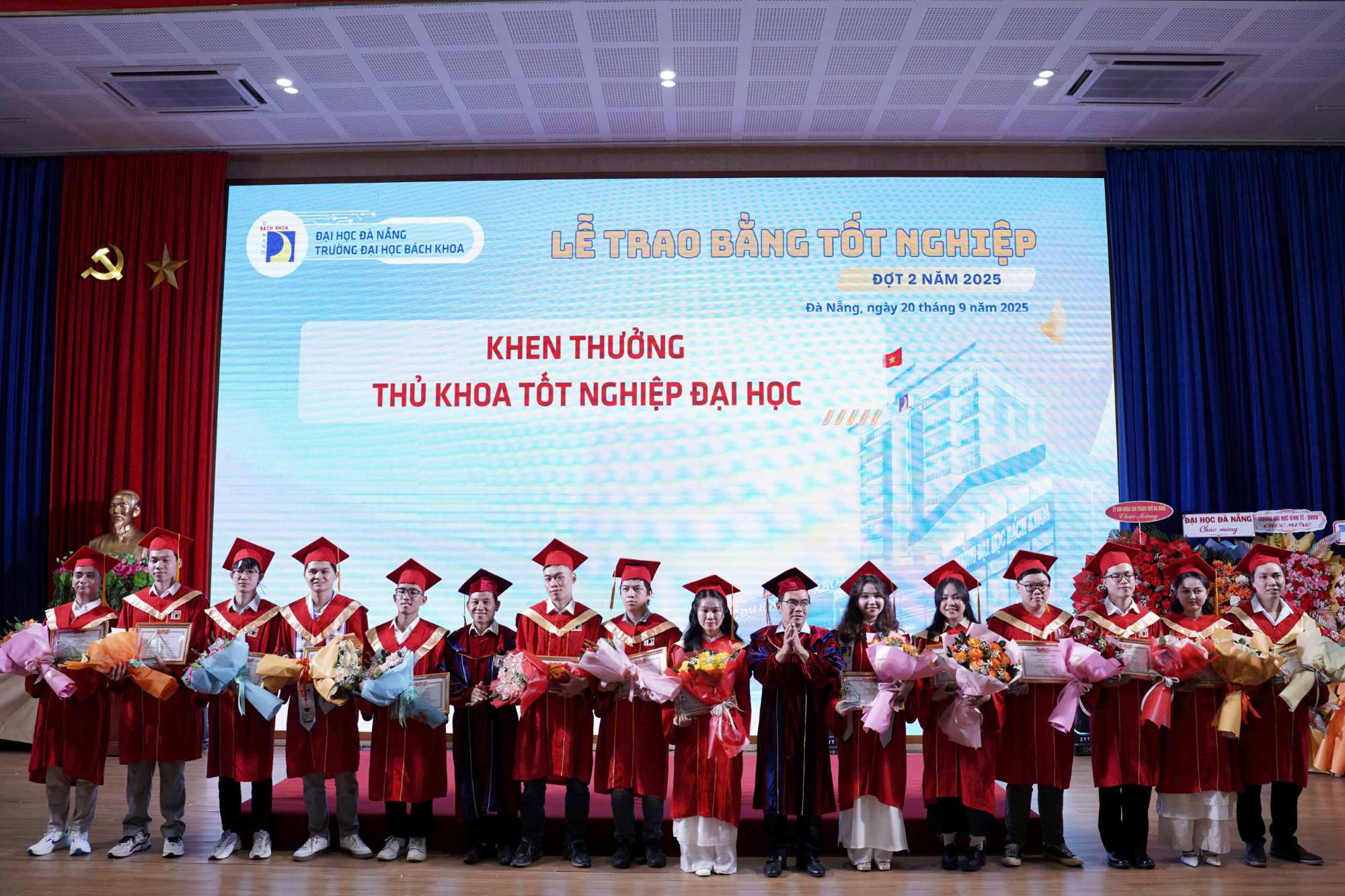 (Đà Nẵng) . Sáng nay 20/9/2025, Trường Đại học Bách khoa – Đại học Đà Nẵng đã tổ chức Lễ trao bằng tốt nghiệp đợt II năm 2025 cho các Tân Tiến sĩ (TS), Tân Thạc sỹ, Tân Kỹ sư, Kiến trúc sư và Cử nhân vừa được công nhận tốt nghiệp.