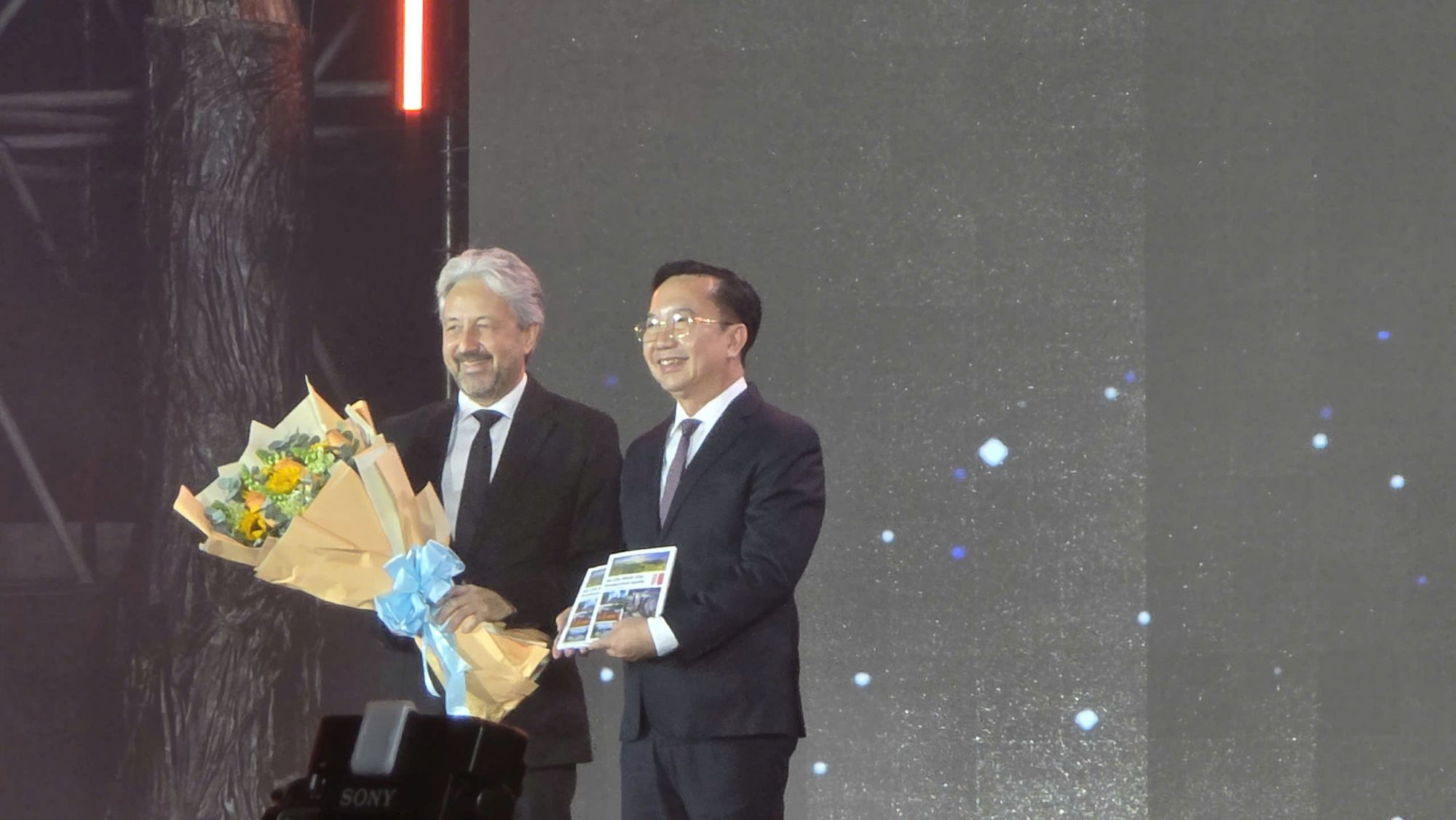 Ông Trần Thế Thuận, Giám đốc Sở Văn hóa và Thể thao TP Hồ Chí Minh nhận bộ tiêu chí điện ảnh từ đại diện Đại sứ quán Pháp.