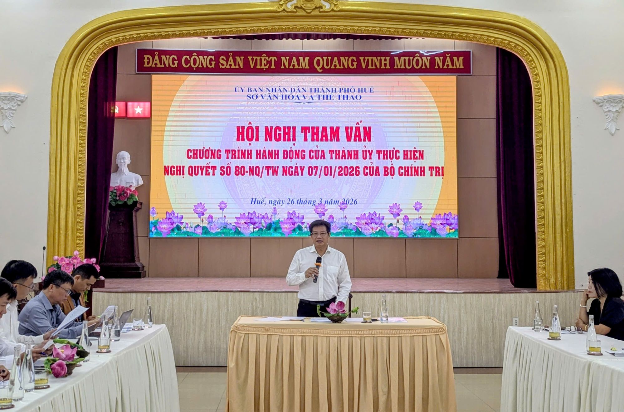 Song song với đó, nhiệm vụ bảo tồn và phát huy giá trị di sản văn hóa được xác định là một trong những nội dung trọng tâm, xuyên suốt của Chương trình hành động. Huế là địa phương sở hữu hệ thống di sản đặc biệt phong phú và đa dạng, trong đó nổi bật là Quần thể di tích Cố đô Huế, Di sản văn hóa thế giới được UNESCO ghi danh, cùng với kho tàng di sản phi vật thể đặc sắc như Nhã nhạc cung đình, Ca Huế, nghệ thuật tuồng và múa cung đình, Nghệ thuật hát Bài Chòi, các lễ hội truyền thống và hệ thống làng nghề lâu đời. Đây không chỉ là những giá trị văn hóa mang tính biểu tượng của Huế mà còn là tài sản vô giá của quốc gia và đóng góp quan trọng vào di sản văn hóa chung của nhân loại.