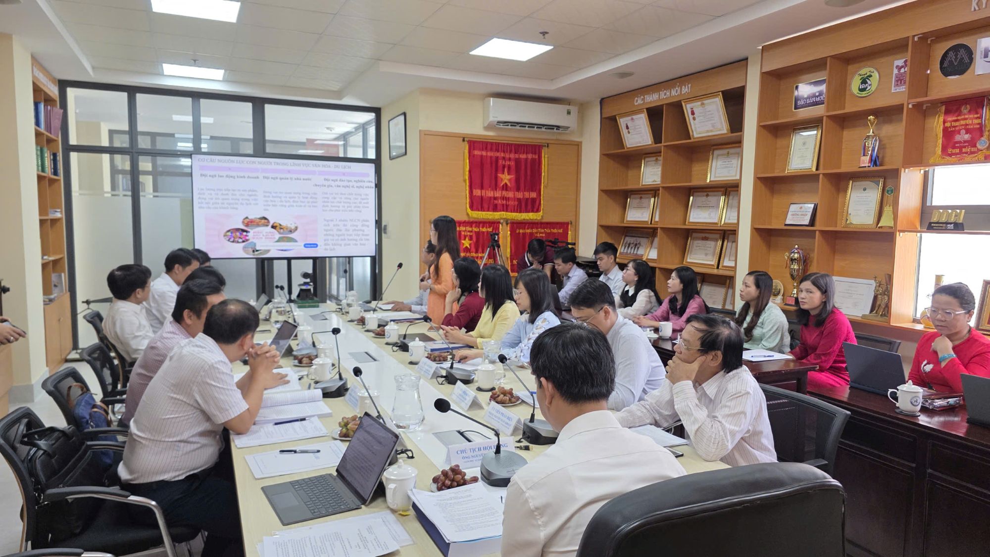 Hội đồng nghiệm thu nhận định, đề tài được triển khai nghiêm túc, bài bản và có định hướng rõ ràng, hoàn thành đầy đủ các mục tiêu đã đăng ký. Trong quá trình thực hiện, nhóm nghiên cứu đã tiến hành khảo sát thực tế, phỏng vấn chuyên gia và xử lý số liệu khoa học, qua đó đánh giá toàn diện thực trạng nguồn nhân lực trong lĩnh vực văn hóa – du lịch của thành phố Huế hiện nay.