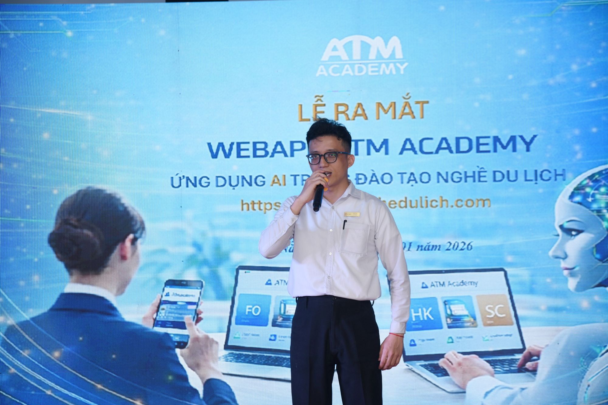 WebApp ATM Academy là nền tảng đào tạo nghề du lịch ứng dụng Trí tuệ Nhân tạo (AI), hướng tới giải bài toán chất lượng nguồn nhân lực dịch vụ trong giai đoạn mới ; được xây dựng theo định hướng đào tạo nghề du lịch. Dựa trên nhu cầu thực tế của doanh nghiệp, kết hợp công nghệ và tiêu chuẩn nghề nghiệp, ATM Academy có các trụ cột chính: Gắn tiêu chuẩn kỹ năng nghề du lịch Việt Nam (VTOS) với thực hành tại doanh nghiệp; Ứng dụng AI hỗ trợ cá nhân hóa lộ trình học tập, cho phép người học học tập mọi lúc, mọi nơi; Triển khai mô hình Blended Training, kết hợp đào tạo trực tuyến với thực hành thực tế tại khách sạn, khu nghỉ dưỡng và doanh nghiệp du lịch.