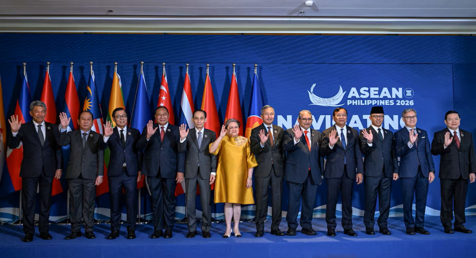 Bộ trưởng Ngoại giao Malaysia Mohamad Hasan, Thư ký Thường trực Bộ Ngoại giao Myanmar Hau Khan Sum, Bộ trưởng Ngoại giao Thái Lan Maris Sangiampongsa, Bộ trưởng Ngoại giao Đông Timor Bendito dos Santos Freitas, Bộ trưởng Ngoại giao Việt Nam Lê Hoài Trung, Bộ trưởng Ngoại giao Philippines Theresa Lazaro, Bộ trưởng Ngoại giao Singapore Vivian Balakrishnan, Brunei…