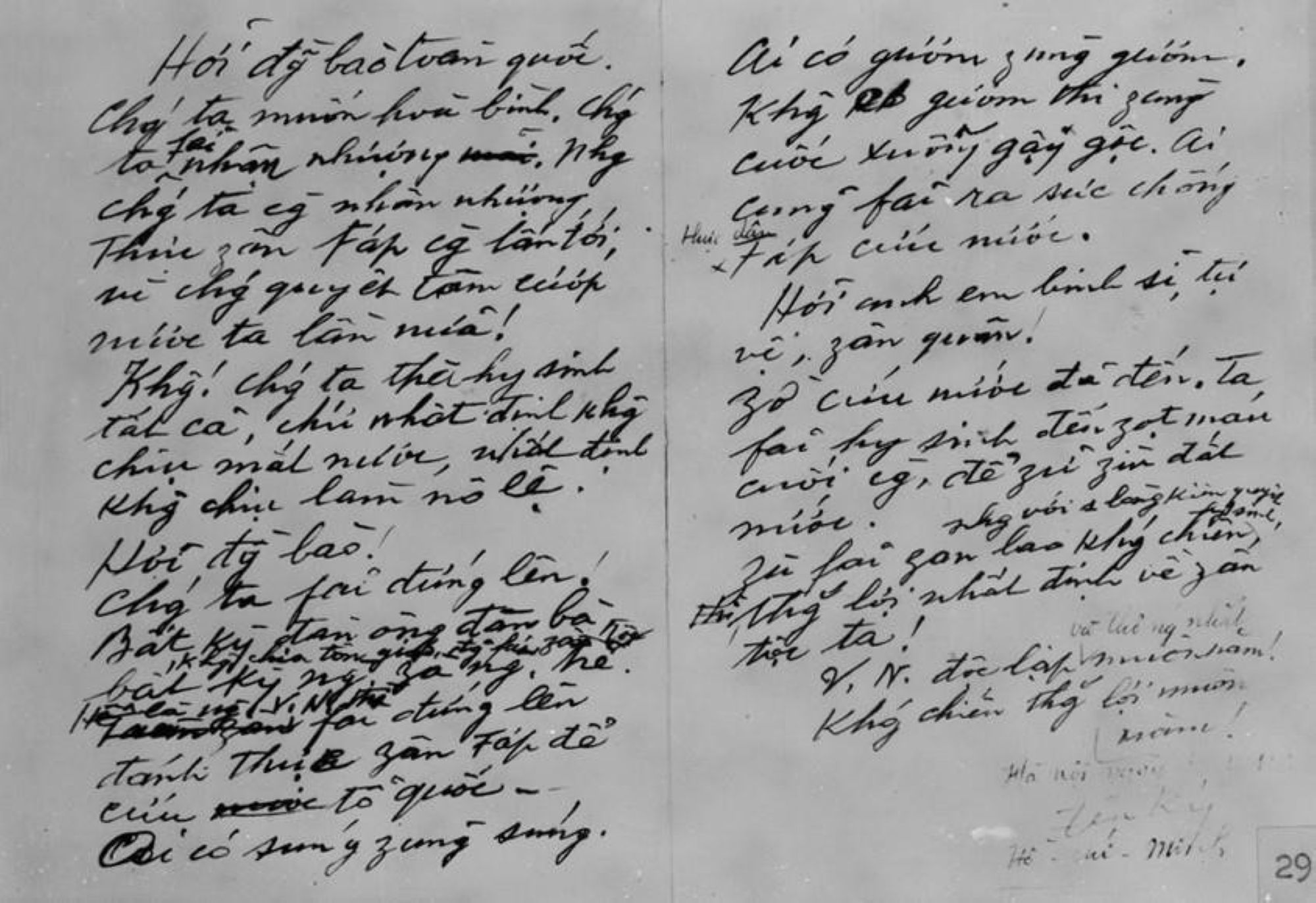 “Hỡi đồng bào toàn quốc! Bất kỳ đàn ông, đàn bà, bất kỳ người già, người trẻ, hễ là người Việt Nam thì phải đứng lên đánh thực dân Pháp để cứu Tổ quốc. Chúng ta thà hy sinh tất cả, chứ nhất định không chịu mất nước, nhất định không chịu làm nô lệ”, đó là lời thề của cả một dân tộc, là tiếng trống mở đầu cho cuộc kháng chiến vĩ đại kéo dài chín năm.