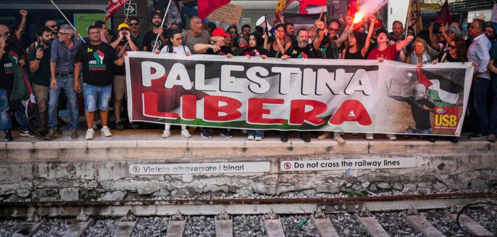 Ý hiện là nhà cung cấp vũ khí lớn thứ ba cho Israel, chỉ sau Hoa Kỳ và Đức. Các cuộc đình công, biểu tình và phong tỏa tại nhà ga và đường phố cũng nhằm thể hiện sự ủng hộ đối với Đội tàu Toàn cầu Sumud, khởi hành từ Sicily hôm thứ Sáu để phá vỡ lệnh phong tỏa Gaza của Israel.