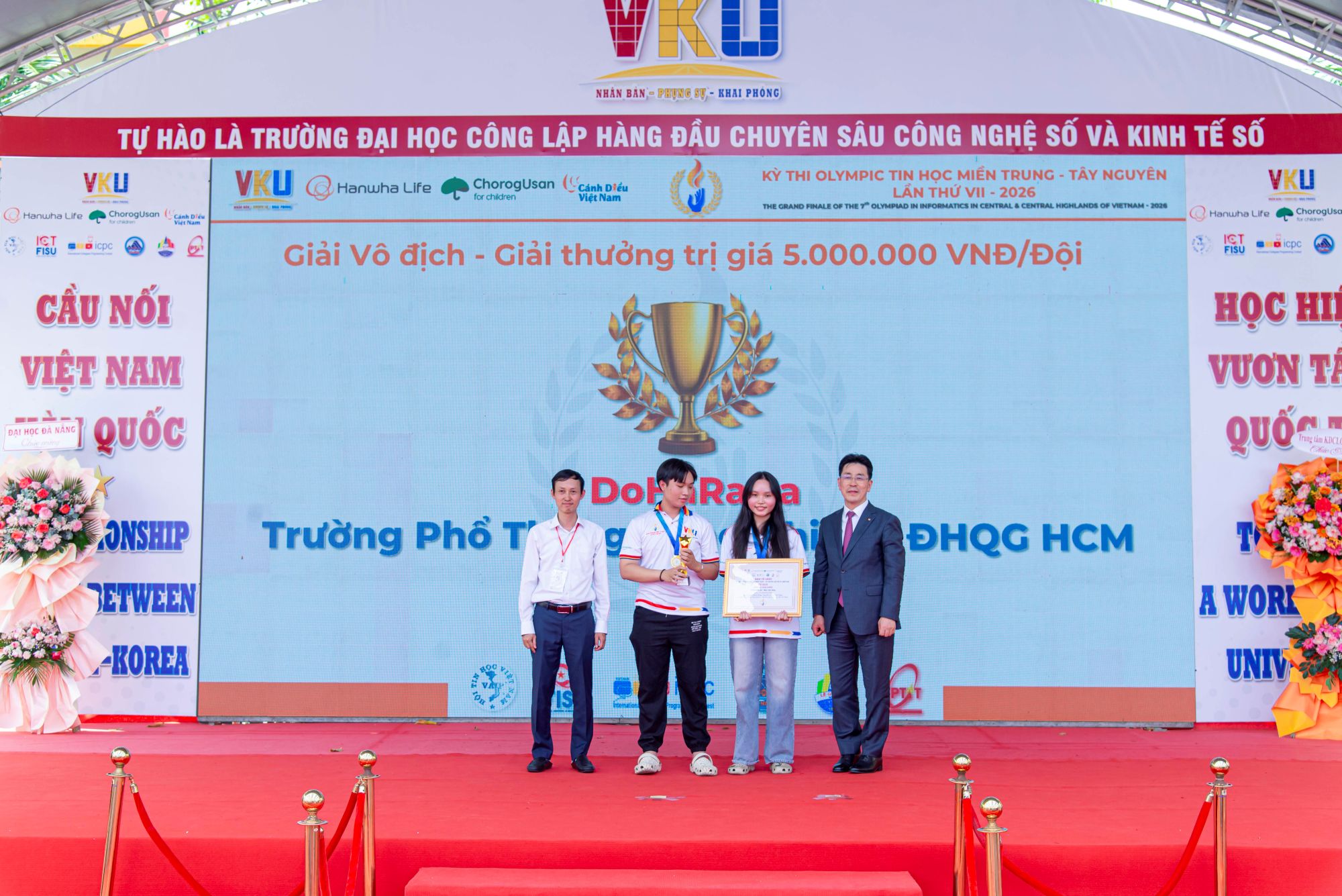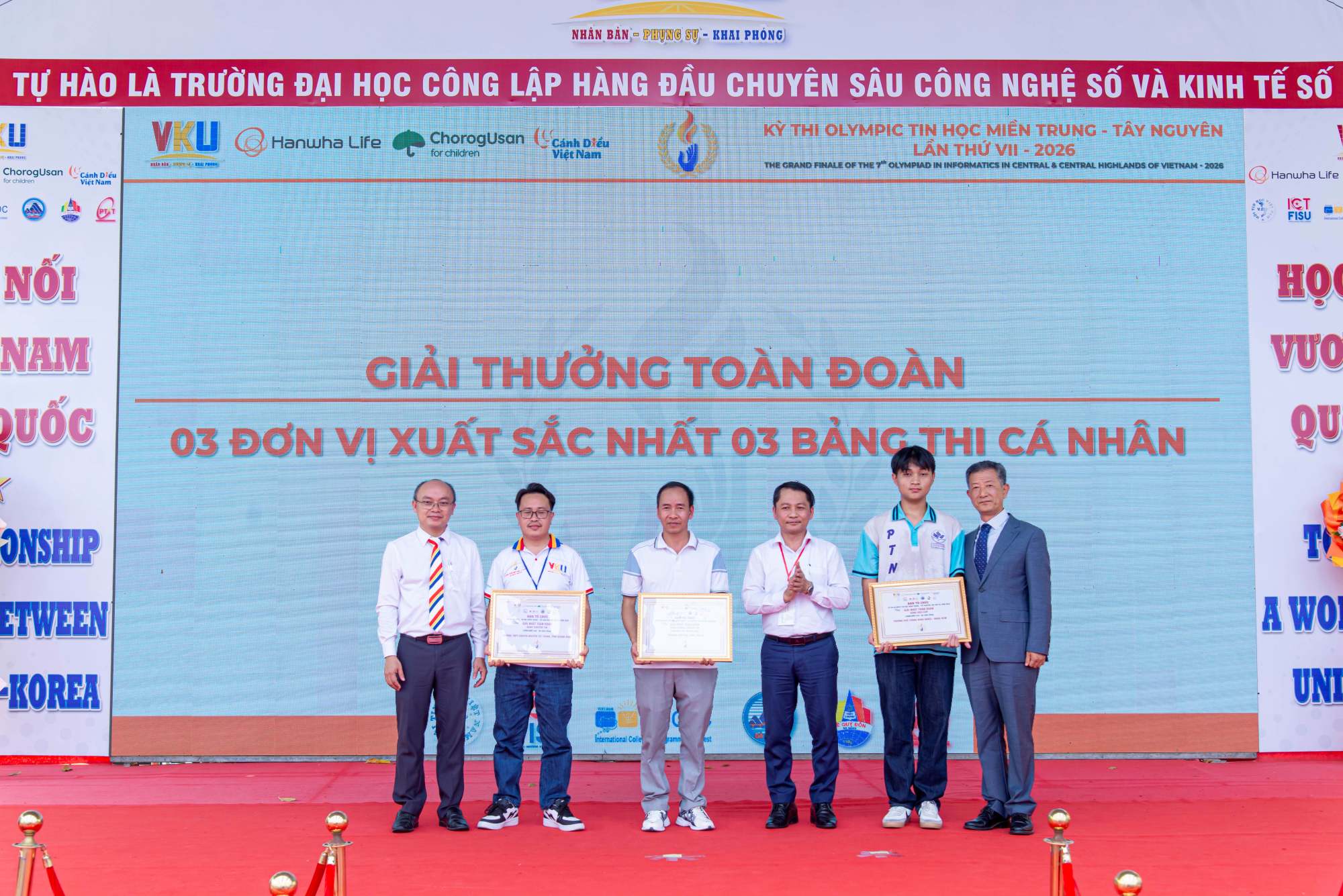 (Đà Nẵng) Sáng nay (12/4/2026), Vòng chung kết kỳ thi Olympic Tin học miền Trung – Tây Nguyên lần VII – năm 2026, do Trường Đại học Công nghệ Thông tin và Truyền thông Việt – Hàn (), Đại học Đà Nẵng chủ trì, phối hợp cùng Hội Tin học Việt Nam, ICPC Việt Nam, Sở Giáo dục và Đào tạo thành phố Đà Nẵng, Trường THPT Chuyên Lê Quý Đôn, Đà Nẵng tổ chức, đã tiến hành tổng kết, trao giải.