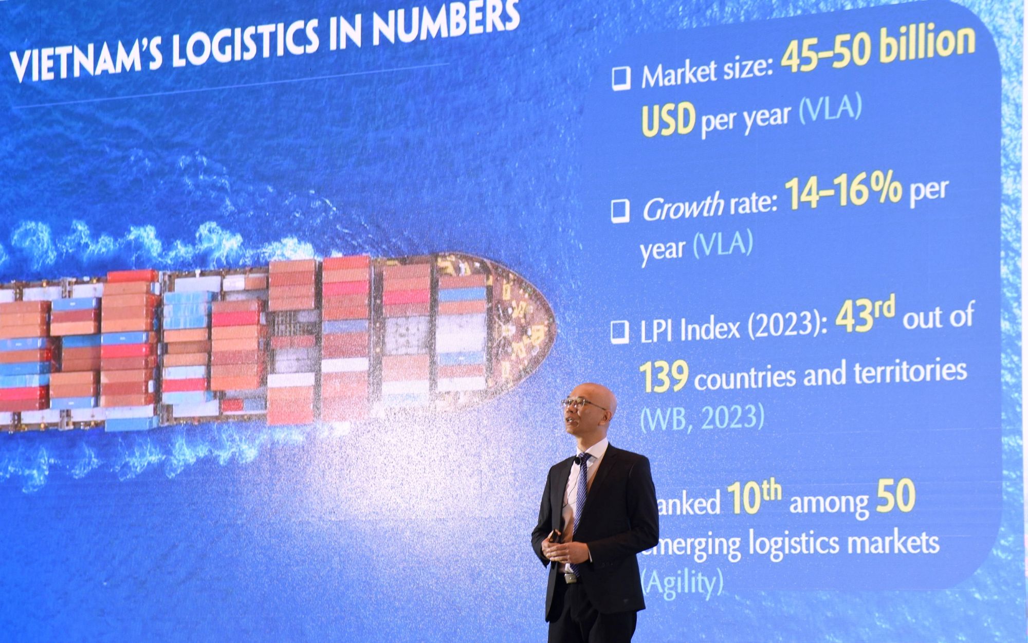 Với sự quan tâm, chỉ đạo sát sao, quyết liệt của Chính phủ, Thủ tướng Chính phủ; sự vào cuộc tích cực, hiệu quả của các ban, bộ, ngành và các địa phương; đặc biệt là nỗ lực vượt bậc của cộng đồng doanh nghiệp, ngành dịch vụ Logistics Việt Nam đã có những bước phát triển khá mạnh (tăng bình quân 14-16%/năm, gấp hơn 2 lần mức tăng bình quân của thế giới; quy mô thị trường dịch vụ logistic Việt Nam khoảng 45-50 tỷ USD, tương đương 10% GDP và 5% kim ngạch xuất nhập khẩu, từng bước khẳng định được thương hiệu, vị thế của Ngành trong khu vực và thế giới). Năm 2025, Việt Nam được các tổ chức quốc tế đánh giá, xếp hạng thuộc Top 10 thị trường logistics mới nổi; Top 4 trong khu vực về Chỉ số cơ hội logistics và Top 5 ASEAN, Top 40 thế giới về Chỉ số Hiệu quả Logistics.